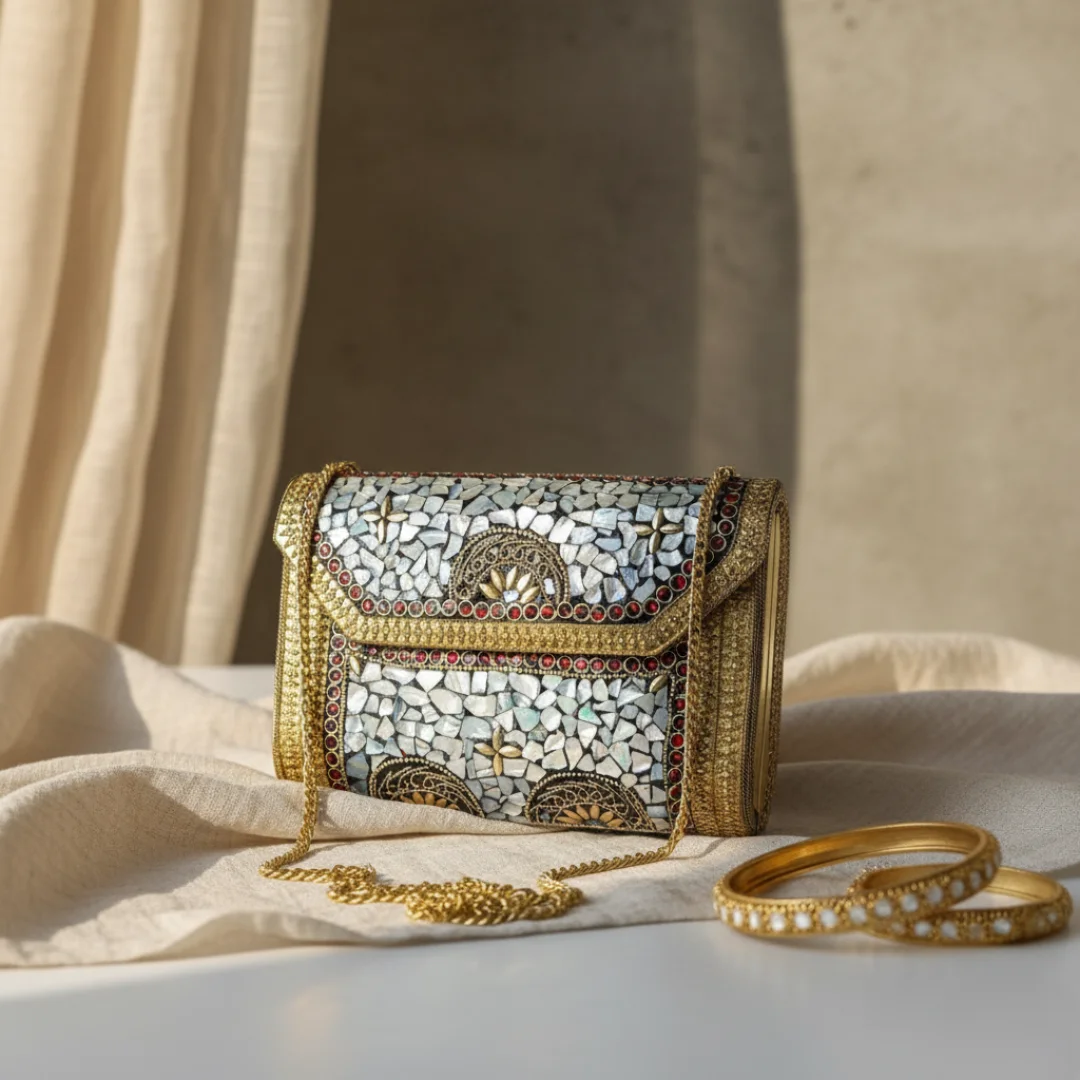 Be the first to review “Mosaic Metal Clutch Handbag”